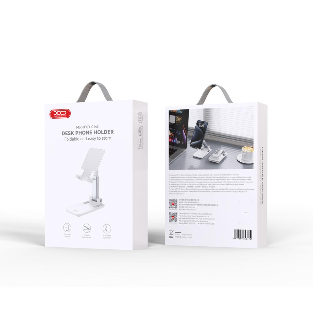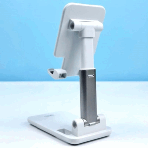 Επιτραπέζια βάση φορητών συσκευών σε λευκό χρώμα για κινητά τηλέφωνα και tablets. Η ρυθμιζόμενη γωνία και ύψος σας επιτρέπουν να τη προσαρμόσετε επακριβώς στις προτιμίσεις σας ενώ ο έξυπνος σχεδιασμός της εξασφαλίζει την έυκολη φόρτιση όσο η συσκευή βρίσκεται επάνω στην βάση, καθώς και φορητότητα χάρη στον αναδιπλούμενο μηχανισμό της.